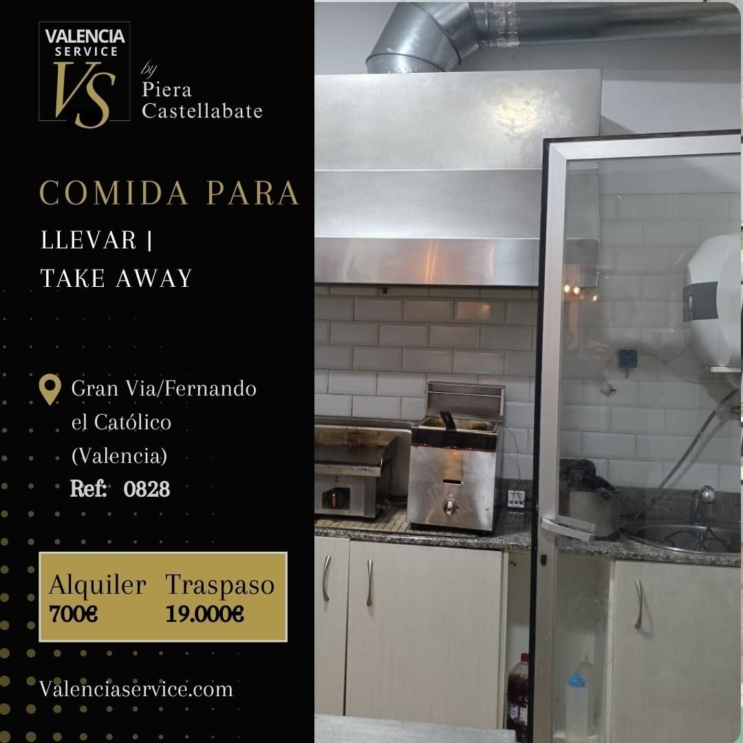 Se traspasa local de comida para llevar totalmente equipado, situado en Extramurs, a escasos metros de una de las arterias principales del centro de Valencia. Zona con gran densidad residencial y comercial, rodeada de pisos turísticos, B&B, tiendas, oficinas, colegios y supermercados.