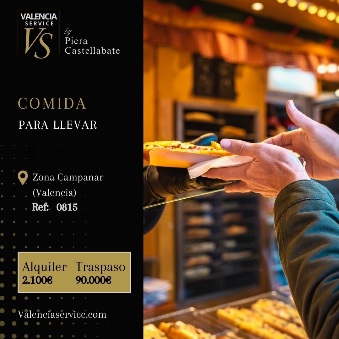 Estupendo negocio de comida para llevar en zona Campanar, entre Benicalap, Sant Pau y Beniferri. Zona de nivel medio-alto con un gran paso de peatones y vehículos durante todo el día. Muchísimos residentes y trabajadores, cerca de colegios, comercios, gimnasios, hoteles, hospital, supermercados y muy bien comunicada con el centro de la ciudad. A unos pasos de paradas de metro y autobús.