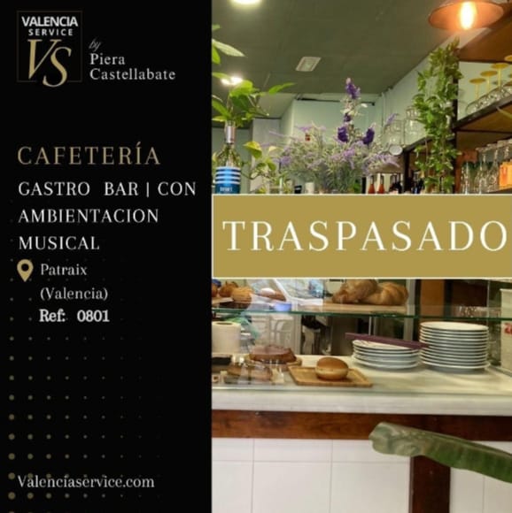 Se traspasa, por cambio de proyecto, cafetería gastro bar completamente reformada, con mucho estilo, muy bien equipada y en pleno rendimiento. Ubicada en la zona de Patraix/Tres Forques, con alta densidad de población. Rodeada de comercios de todo tipo, casas falleras, parques, supermercados y colegios, lo que asegura un gran flujo de residentes y trabajadores.