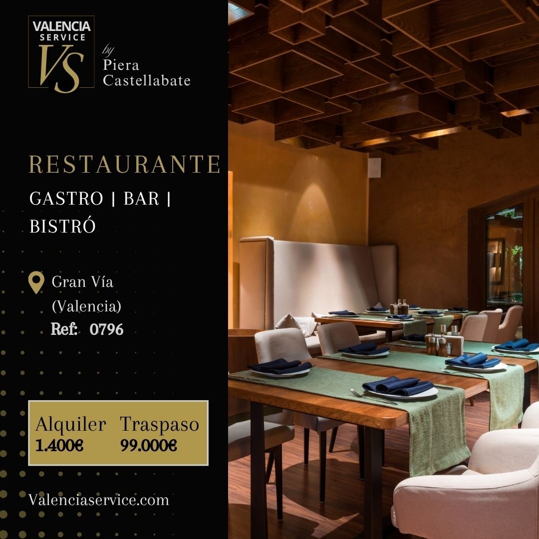 ¿Te gustaría empezar tu nuevo proyecto en una de las zonas más transitadas de Valencia? Valencia Service te presenta esta gran oportunidad en la zona de la Gran Vía Marqués del Turia, entre Cánovas y Colón. Zona con mucha demanda para la hostelería. Restaurante, gastrobar o bistró reformado con mucho gusto, en plena actividad y listo para trabajar desde el primer día. Muy bien distribuido y equipado